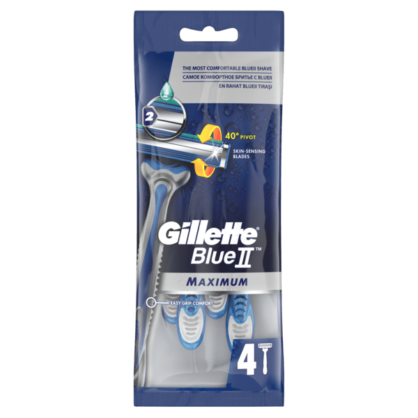 Завдяки плаваючій головці і двом найтоншим гострим лезам описові разові верстати зроблять шкіру вашого обличчя ідеально гладкою. Одного легкого дотику, майже несуттєвого ковзання даної бритви достатньо, щоб м`яко видалити найжорсткішу рослинність. Обриваючи Ваш Шкірний покрив, верстат Blue II MAXIMUM Насичує його вологою та живлющим екстрактом алое, що містяться в його змащувальної смузі. Завдяки цьому досягається максимальний захист від сухості та подразнення епідермісу. Жодних мук, порізів чи дискомфорту. Тільки приємне гоління зі верстатами Blue II Maximum і свіжість ідеально гладкої шкіри.
