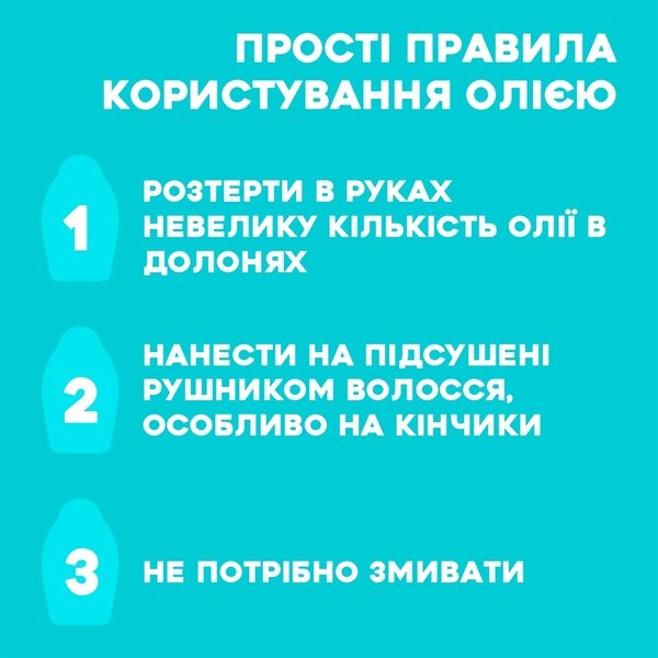 Арганова олія з посиленою формулою для глибокого відновлення волосся підходить для пошкодженого, сухого та жорсткого волосся. Олія зволожує волосся, надає йому сили, повертає м'якість і природний блиск. Допомагає захистити волосся від ультрафіолетових променів і негативного впливу термічних приладів для укладки волосся. Арганова олія з посиленою формулою для глибокого відновлення волосся підходить для пористого, пофарбованого і волосся з посіченими кінчиками. Олія зволожує волосся, надає йому сили, повертає м'якість і природний блиск. Допомагає захистити волосся від ультрафіолетових променів і негативного впливу термічних приладів для укладання волосся.