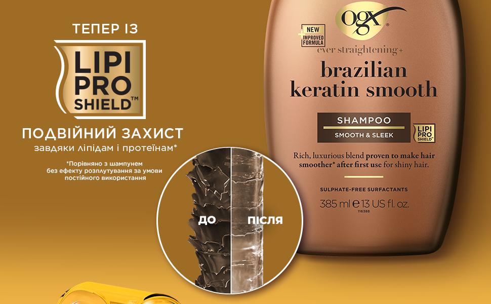 OGX, провідний бренд з догляду за волоссям у США, представляє нову поліпшену формулу Lipi Pro Shield, яка забезпечує більш здорове волосся вже після одного миття. Ця інноваційна формула розроблена для захисту природних білків і ліпідів, які часто пошкоджуються через щоденні процедури укладання. Волосся складається зі складної структури, що формується з білків і ліпідів, які утворюють захисний бар'єр. Однак щоденні процедури, як-от термічне укладання та хімічні обробки, можуть порушувати цей бар'єр, що призводить до пошкодження та сухості. Формули OGX створені для того, щоб розв'язувати ці проблеми, забезпечуючи очищення та кондиціонування, які підтримують природні білки та ліпіди у волоссі.