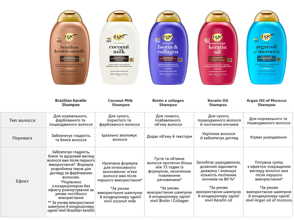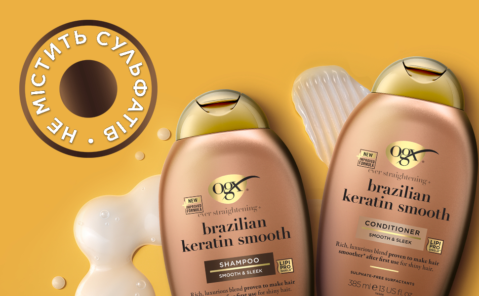 Шампунь OGX Ever Straightening + Brazilian Keratin Smooth - ідеально підходить для густого та пористого волосся. Склад збагачений олією авокадо та натуральними екстрактами, щоб посилюють природний блиск і сяйво волосся, роблячи його вигляд і відчуття більш здоровим.
