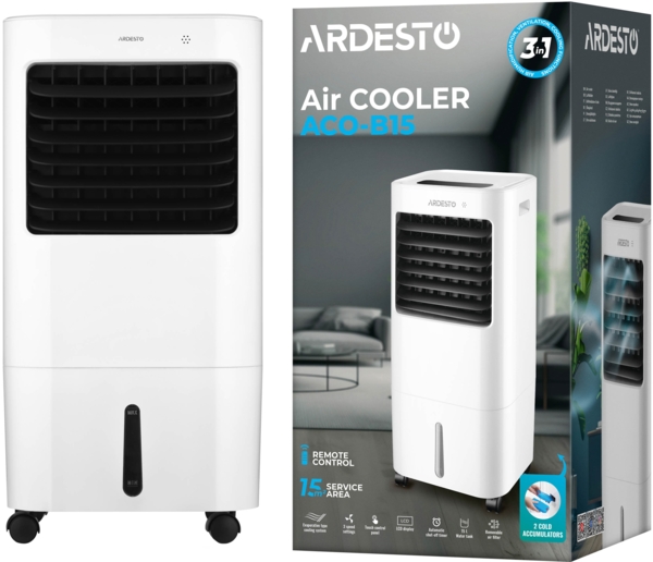 Ardesto ACO-B15 – це персональний помічник для клімат-контролю, який поєднує ефективність, технологічність та зручність. Пристрій стане незамінним у спекотні дні, допоможе підтримувати оптимальний рівень вологості та наповнить приміщення свіжим та чистим повітрям. Багатофункціональний пристрій поєднує відразу три важливі функції: охолодження, зволоження та вентиляцію. Завдяки випарному типу охолодження він не лише знижує температуру в приміщенні, а й створює комфортний мікроклімат, особливо необхідний спекотними днями.