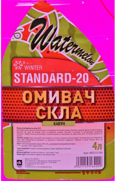 - Омивач Дорожня Карта зимовий -20°С Standard Кавун, 4л (48021155184)