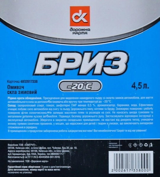 - Омивач Дорожня Карта зимовий Бриз -20 ° С 4,5 л (4802617338)
