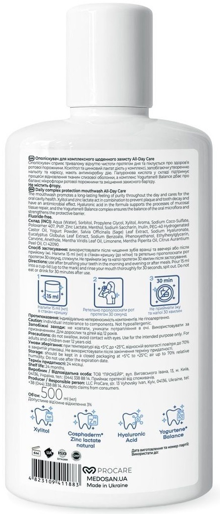 Ополіскувач для комплексного щоденного захисту Medosan All-Day Care — це розумний вибір для тих, хто шукає комплексний щоденний захист без компромісів.