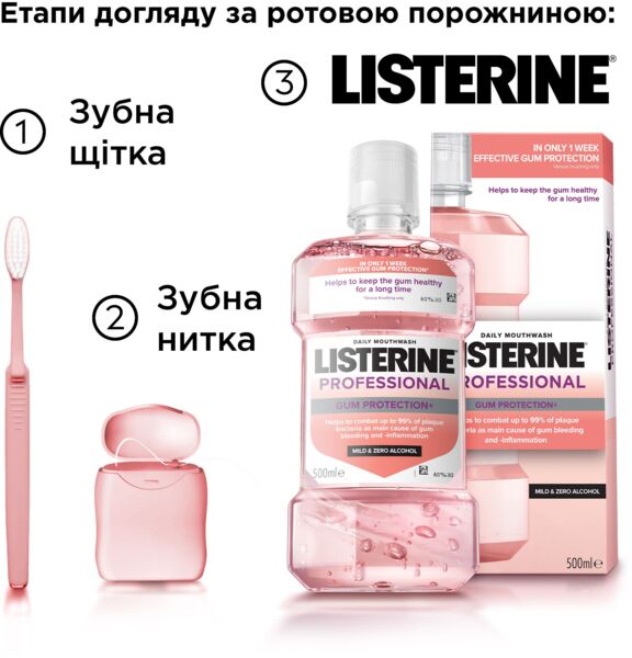 - Ополіскувач для ротової порожнини Listerine Професійний Захист ясен 500 мл