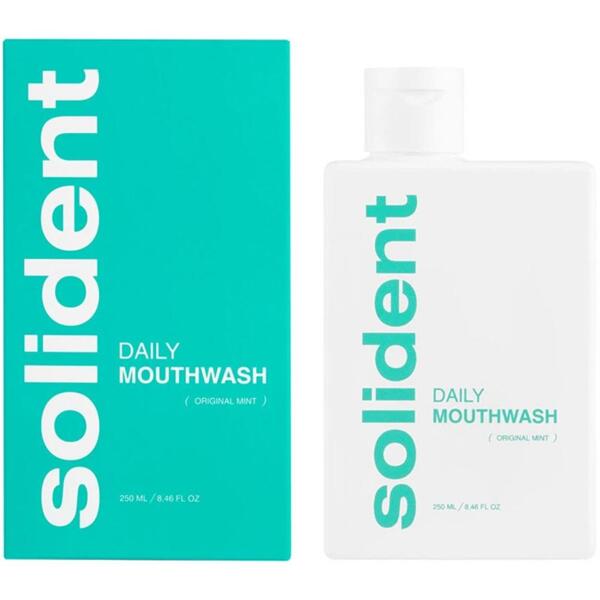 Ополіскувач для ротової порожнини Solident Original mint зі смаком м'яти і персика миттєво освіжає подих і надає впевненості, особливо перед побаченням або важливою зустріччю. Він очищає від залишків їжі, нормалізує pH ротової порожнини і перешкоджає утворенню зубного нальоту. Ополіскувач зручно використовувати протягом дня, щоразу після їди.