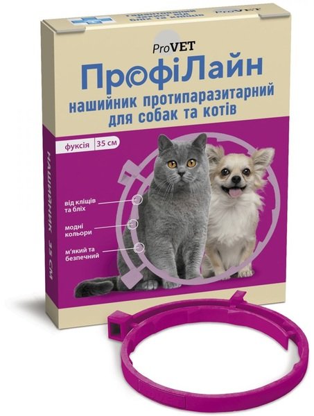 - Нашийник протипаразитарний ProVET ПрофіЛайн для котів та собак, 35 см, фуксія