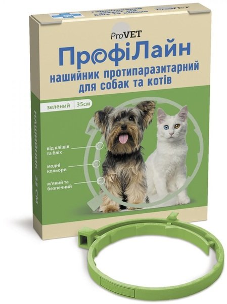- Нашийник протипаразитарний ProVET ПрофіЛайн для котів та собак, 35 см, зелений