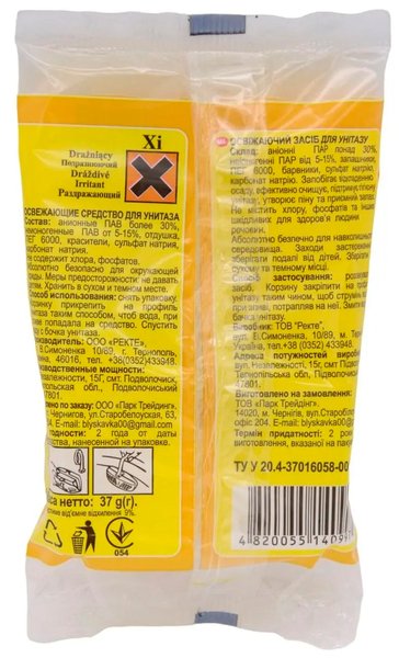 Схожі товари Освіжаючий засіб для унітазу Blyskavka Clean Лимонна свіжість