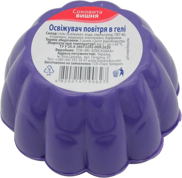 Схожі товари Освіжувач повітря гелевий Blyskavka Fresh Соковита вишня