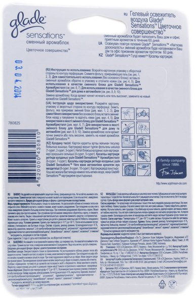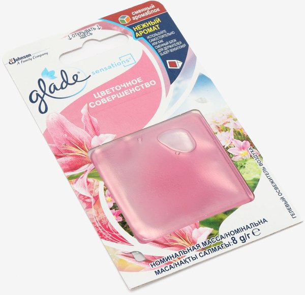 Гелевий освіжувач повітря з унікальною технологією Sensations. Може використовуватися як змінний картридж для Glade Sensations Аромакристал/Декор/з магнітом/для ванної, так і самостійно в будь-якому приміщенні.