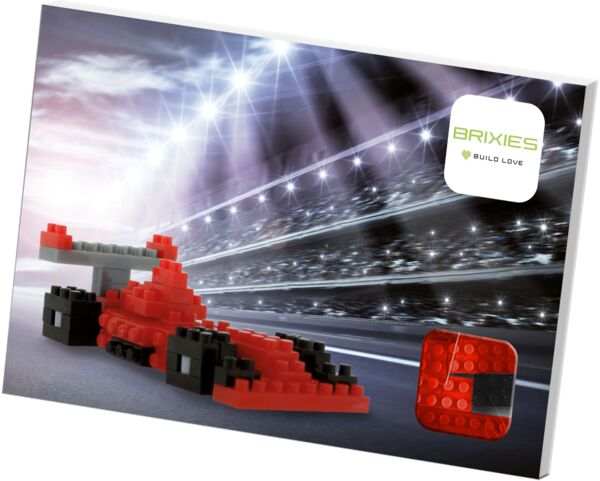 Надсилайте маленькі привітання, які запам'ятовуються надовго! Листівки від BRIXIES дуже весело розпаковувати, складати та збирати. Порадуйте своїх близьких і надішліть їм затишний плед або щось для ігор з листівкою "Гоночний автомобіль".