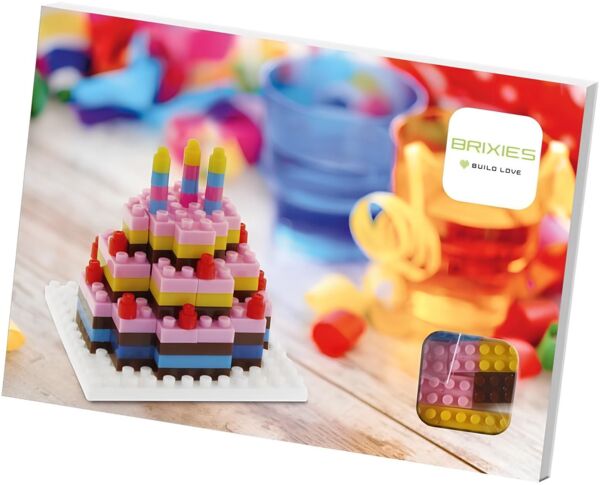 Надсилайте маленькі привітання, які запам'ятовуються надовго! Листівки від BRIXIES дуже весело розпаковувати, складати та збирати. Порадуйте своїх близьких і надішліть їм затишний плед або привітайте з листівкою "Святковий торт".