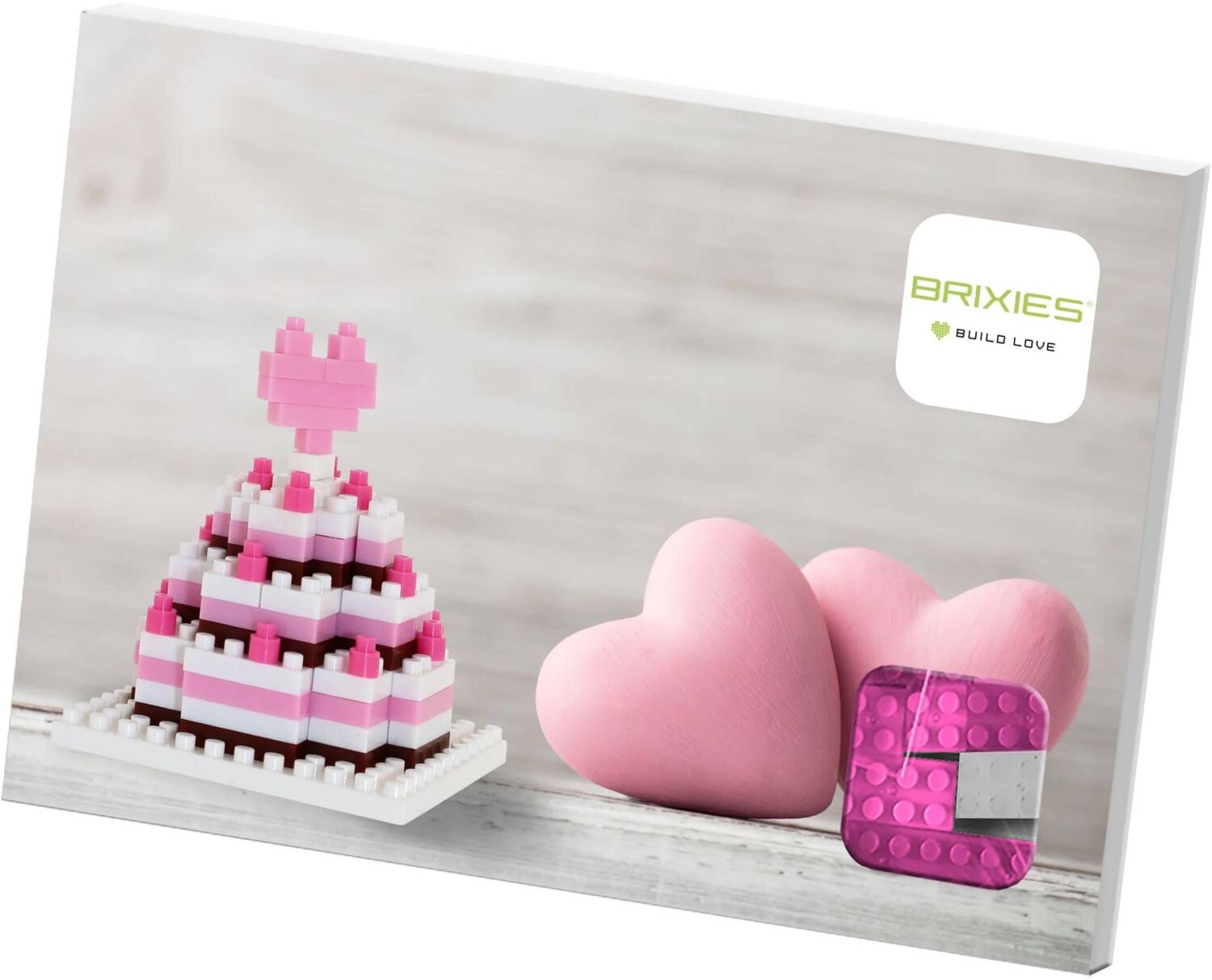 Надсилайте маленькі привітання, які запам'ятовуються надовго! Листівки від BRIXIES дуже весело розпаковувати, складати та збирати. Порадуйте своїх близьких і надішліть їм затишний плед або товариша для ігор з листівкою "Весільний торт".