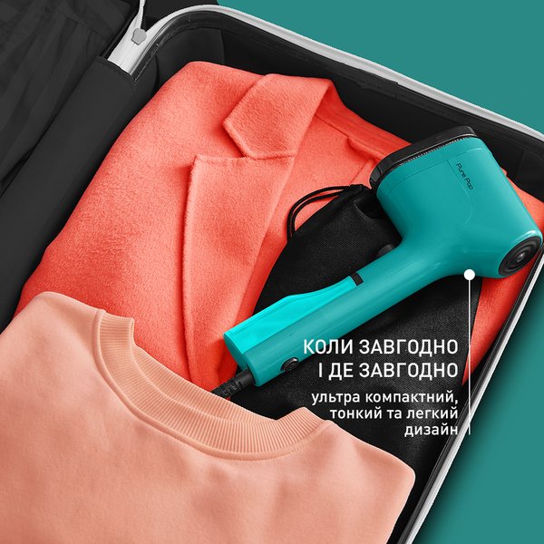Компактний, зручно тримати в руці. Простий дизай. Не потрібно тепер тягати дошку, щоб попрасувати речі. Кабель довгий. Не тільки відпарює, а можу лише почистити речі від ворсинок чи шерсті . Є додаткова насадка, чохол для зберігання і для подорожей незамінний, багато місця в валізі не займає.