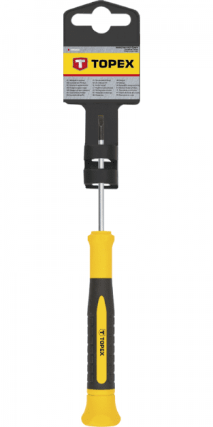 Викрутка прецизійна шліцьова TOPEX призначена для виконання механічних робіт, а також робіт, які виконуються майстрами-аматорами. Стрижень виготовлений з міцної хромомолібденової сталі, що забезпечує довгий термін служби інструменту. Магнітне жало із загартованої сталі полегшує роботу. Поворотний наконечник підвищує функціональність і дозволяє виконувати точну роботу. Ергономічна пластикова рукоятка, покрита антискользящим матеріалом, забезпечує безпеку і комфорт під час роботи. Бренд TOPEX призначений для домашніх майстрів.