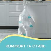 Пакети для сміття з затяжками з друком Pani Blysk для господарських цілей (пакування, зберігання, транспортування нехарчових продуктів, сміття). Для стандартного відра. Зручні, міцні, надійні, стильні. Виготовлені з повторно переробленого пластику. Pani Blysk – українська торгова марка Корпорації «Біосфера», розроблена за допомогою штучного інтелекту. Pani Blysk – товари для дому, що надають блиск!