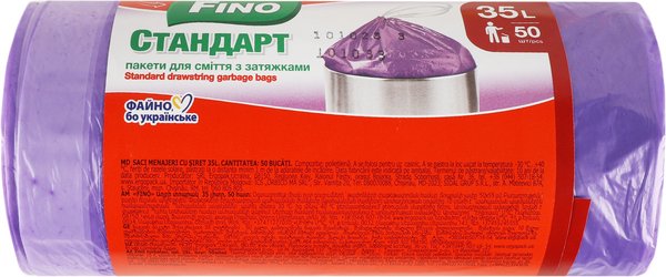 Пакети для сміття зі зтяжкою Fino Cтандарт 35л*50шт