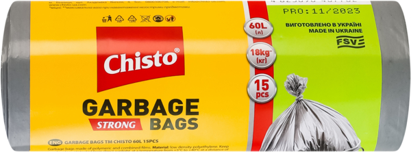 - Пакети для сміття Chisto strong 60 л 15 шт