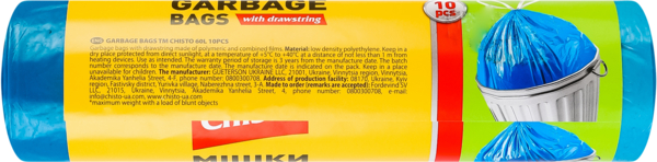- Пакети для сміття Chisto strong с затяжками 60 л 10 шт