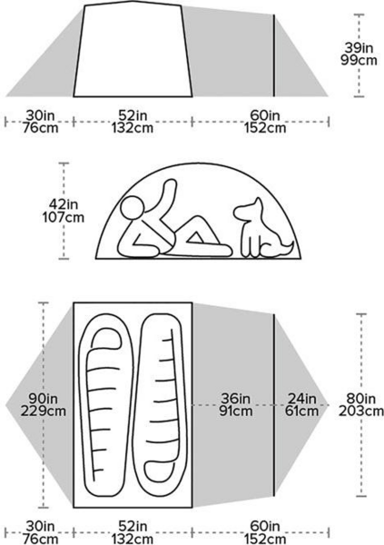 Спальня намету має двоє дверей і два тамбури. Це зручно, адже коли вам захочеться помилуватися зірками або зустріти світанок, не потрібно шукати єдині двері, тим самим тривожачи сон іншого користувача. Спрощена симетрична конструкція каркаса має попередньо вигнуті дуги, що збільшують внутрішній простір. Намет має продуману систему вентиляції, яка підтримує комфортну температуру і перешкоджає утворенню конденсату.