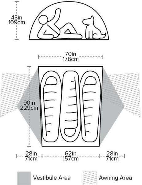 Зручний трекінговий, трьохсезонний намет для трьох від бренду Big Agnes. Для зручності, є два входи та два тамбури. Ще, тамбур можна використовувати як навіс, щоб збільшити житлову площу або зробити захист від сонця. Всередині є безліч кишеньок для зберігання особистих речей (відділ для електроніки, місце для ліхтарика).