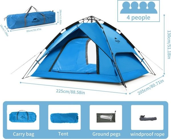 - Намет чотиримісний автоматичний Naturehike NH21ZP008, блакитний
