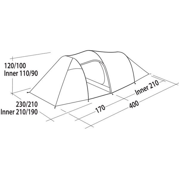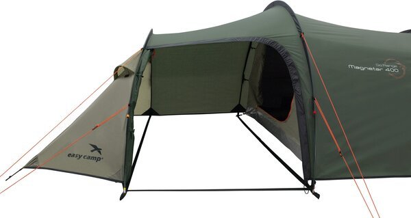 Easy Camp Magnetar 400 Rustic Green (120416) - легкий чотиримісний тунельний намет із боковим входом. Місткий тамбур призначений для зберігання спорядження та приготування їжі в похідних умовах. Затемнена спальня розрахована на чотирьох людей гарантує Вам комфортний сон у будь-який час дня та ночі. Регульовані вентиляційні вікна у фронтальній та тильній частині намету забезпечують приплив свіжого повітря, позбавляючи утворення конденсату всередині. Для Вашої зручності є точка для кріплення ліхтаря та кишені для зберігання дрібних речей. Намет чотиримісний Easy Camp Magnetar 400 Rustic Green (120416) стане ідеальним вибором для піших сімейних походів, а також для вело- і мототуристів.