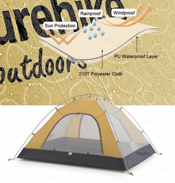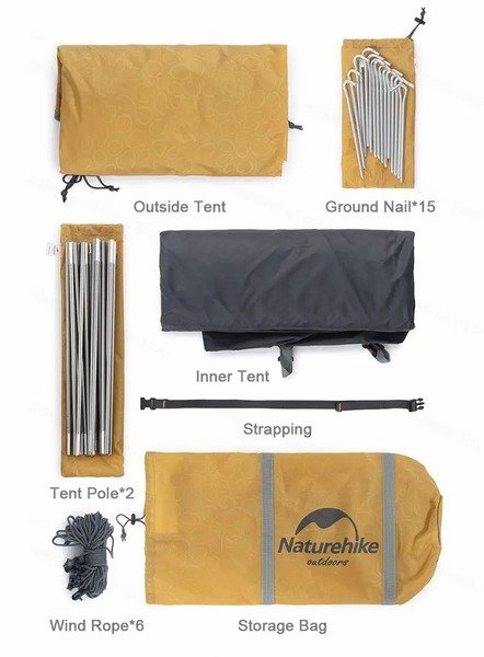 - Намет двомісний Naturehike P-Series NH18Z022-P 210T/65D, жовтий