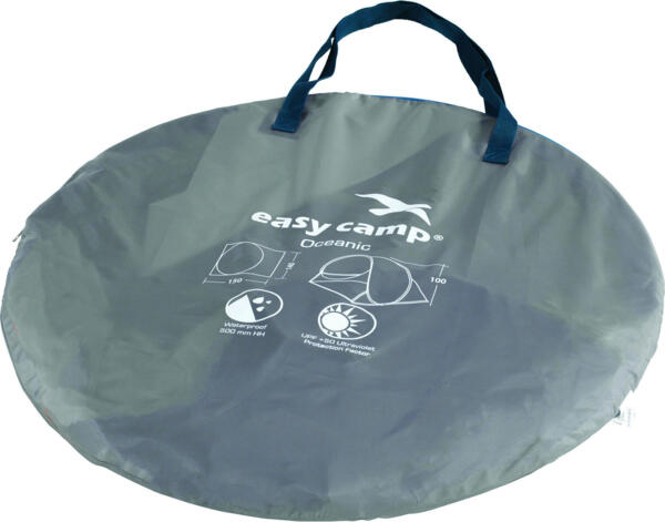 Отримайте миттєве укриття за допомогою пляжного намету - Easy Camp Oceanic Grey/Sand (120433). Просто відкрийте круглу сумку для перенесення, і намет набуде форми, готової захистити вас від сонця, вітру та невеликого дощу. Відкрита передня частина дозволить вам насолоджуватися краєвидами та стежити за своїми дітьми. Відтяжки підвищують стійкість у вітряну погоду, а вшите дно забезпечує захист від піску та трави. Намет пляжний Easy Camp Oceanic Grey/Sand (120433) ідеально підходить для активного відпочинку.