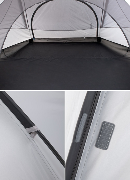 Намет вміщує в себе три людини. Він забезпечує користувачам комфортне та безпечне перебування на природі під час відпочинку.