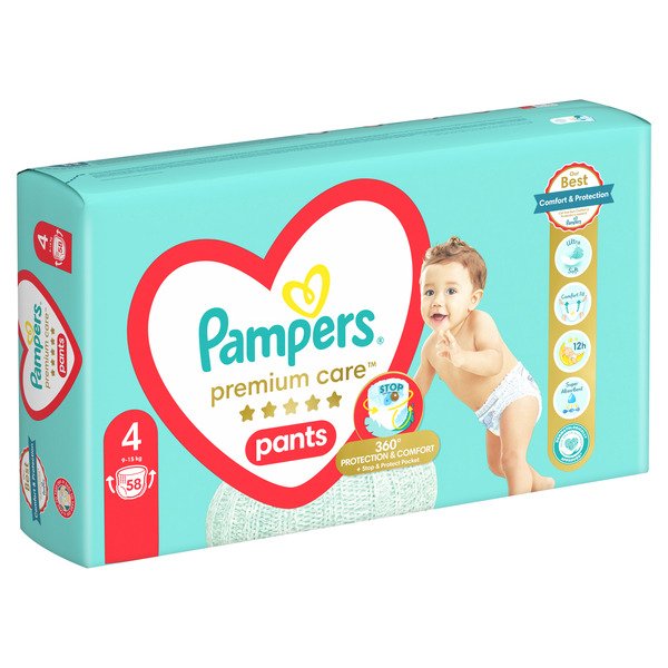 Завдяки технології 360° Comfort Fit ультрам'які та еластичні трусики Pampers Premium Care Pants приймають форму тіла малюка. Підгузники вбирають та надійно утримують вологу всередині, забезпечуючи до 12 годин сухості.