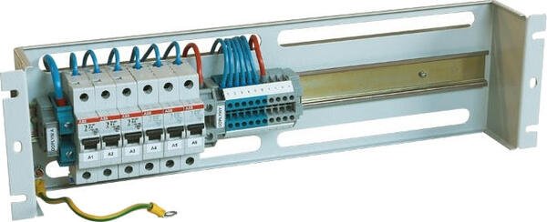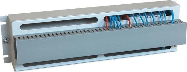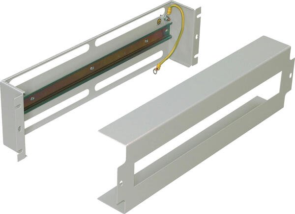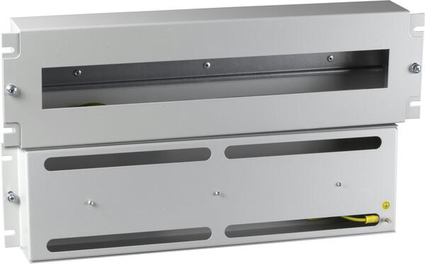 Універсальний 19-дюймовий корпус для вбудовування в модульну апаратуру. У стандартній комплектації оснащений рейкою TS-35 і кришкою з отвором 402,5 x 45,5 мм.