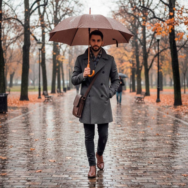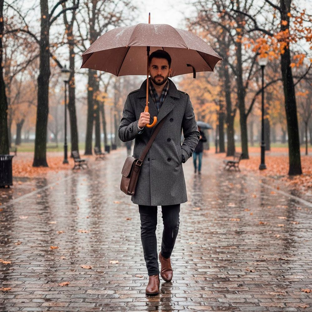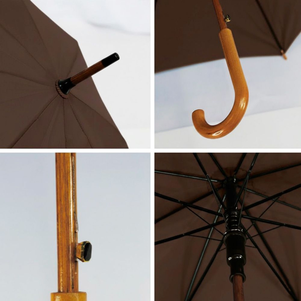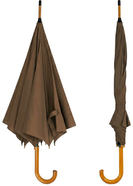 Парасолька-тростина Toprain від Bergamo — це напівавтоматична модель коричневого кольору, яка забезпечує ідеальний захист від опадів. Її вигнута ручка та стрижень виготовлені з натурального дерева, тому парасолька-тростина досить легка.