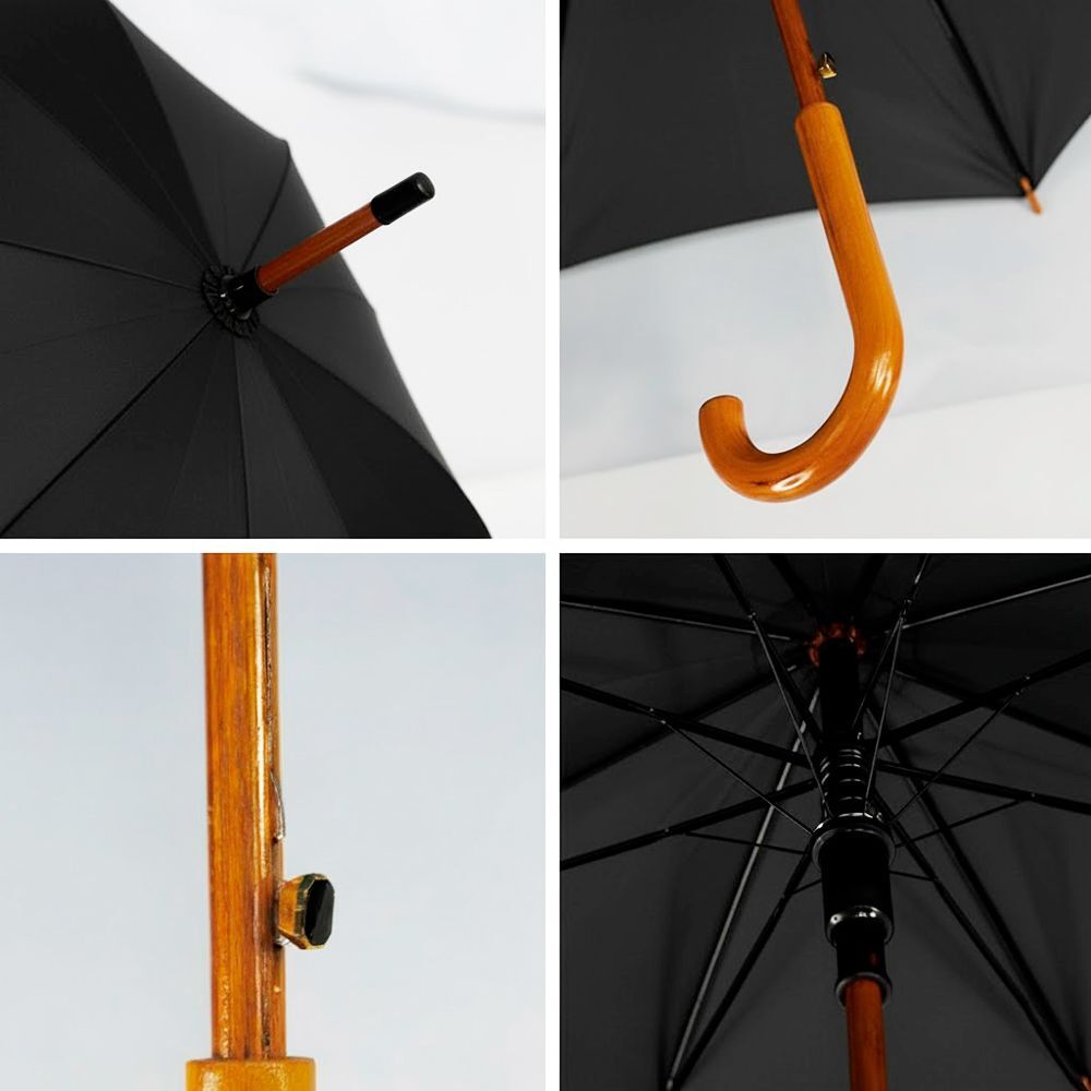 Парасолька-тростина Toprain від Bergamo — це напівавтоматична модель, яка забезпечує ідеальний захист від опадів. Її вигнута ручка та стрижень виготовлені з натурального дерева, тому парасолька-тростина досить легка.