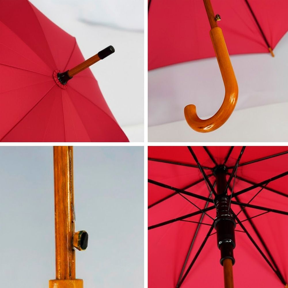 Парасолька-тростина Toprain від Bergamo — це напівавтоматична модель, яка забезпечує ідеальний захист від опадів. Її вигнута ручка та стрижень виготовлені з натурального дерева, тому парасолька-тростина досить легка.