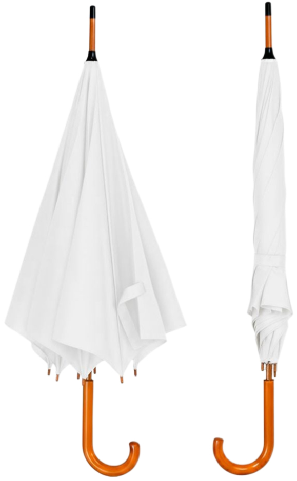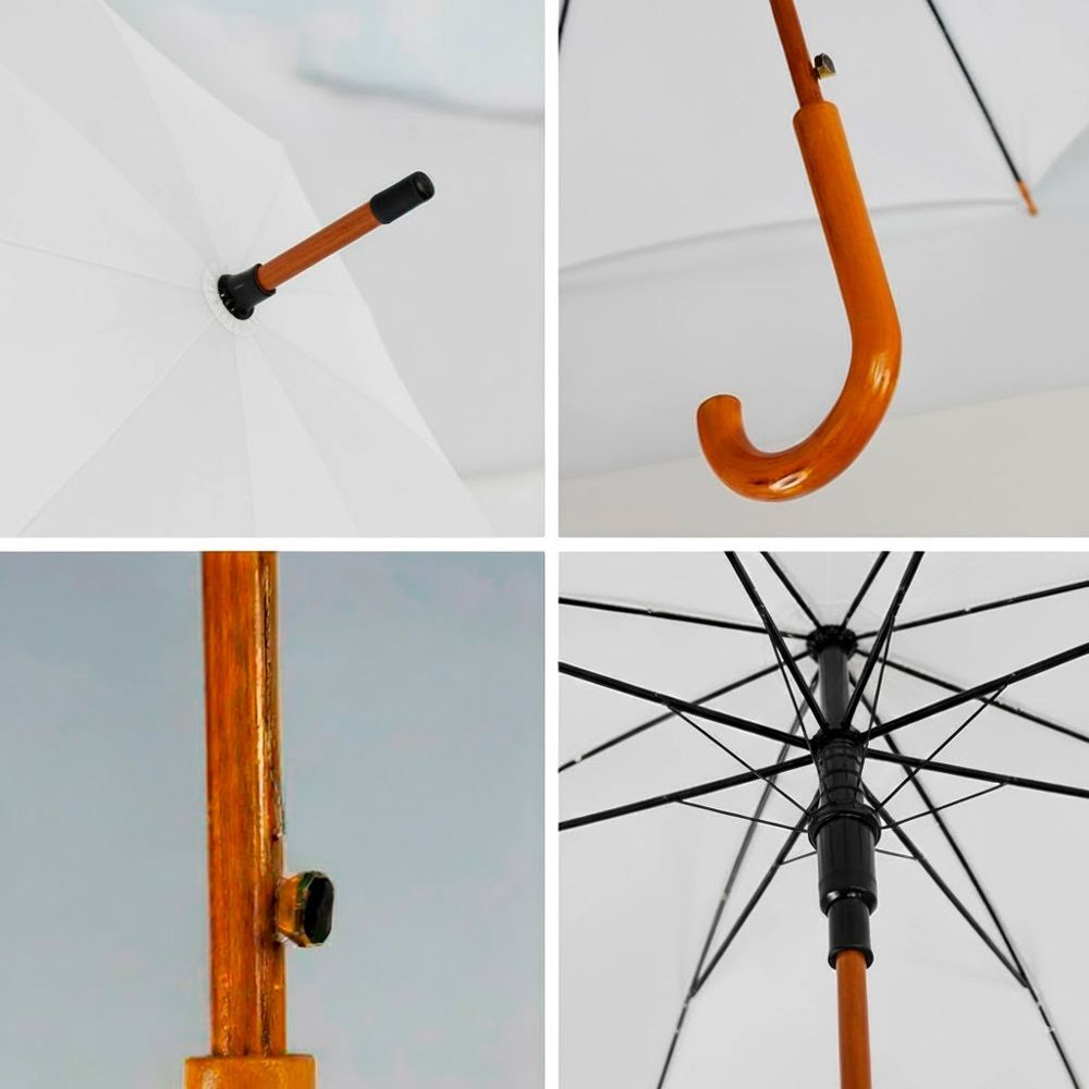 - Парасолька-тростина має суцільну ручку без телескопічного механізму, оснащена міцними металевими спицями;