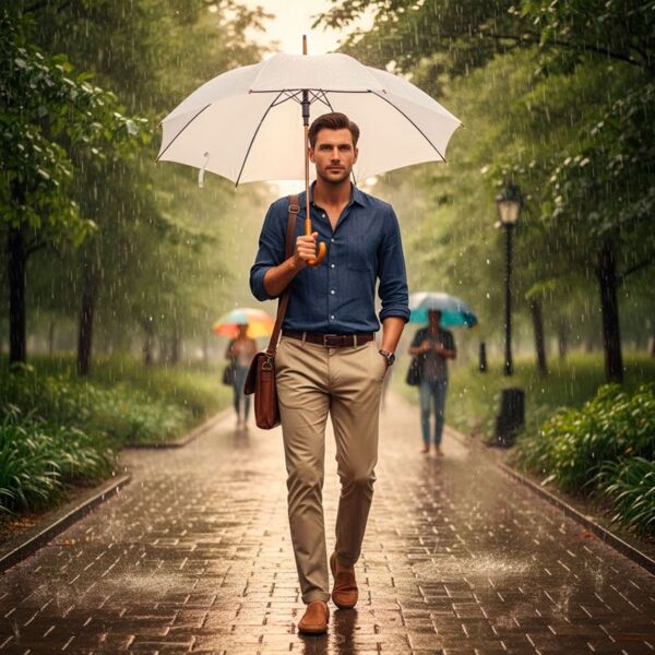Парасолька-тростина Toprain від Bergamo — це напівавтоматична модель, яка забезпечує ідеальний захист від опадів. Її вигнута ручка та стрижень виготовлені з натурального дерева, тому парасолька-тростина досить легка.