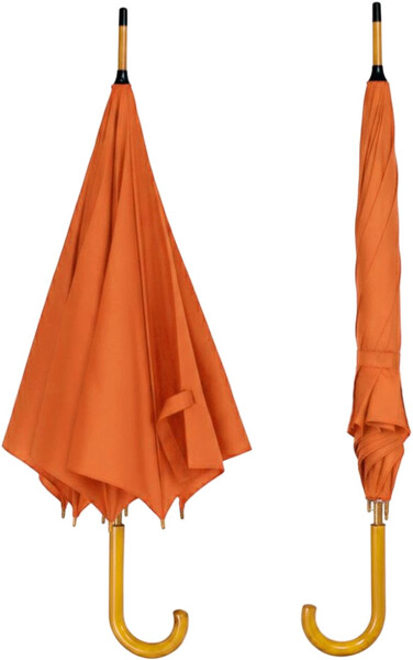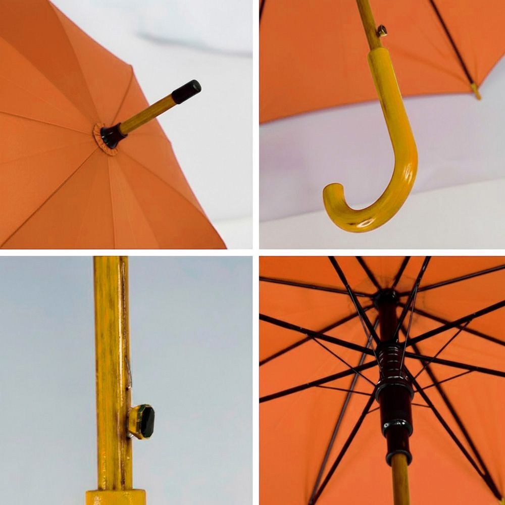 - Парасолька-тростина має суцільну ручку без телескопічного механізму, оснащена міцними металевими спицями;