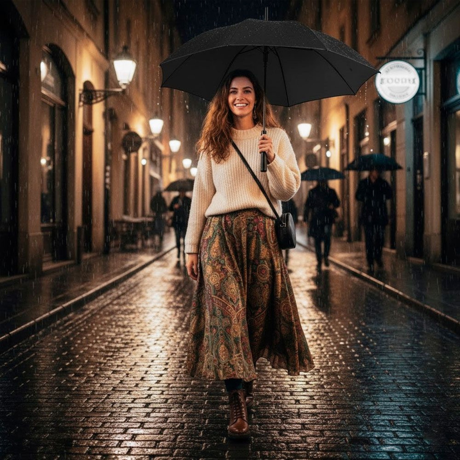 - Конструкція оснащена міцним чорним сталевим стрижнем та гнучкими 8 спицями зі скловолокна, які забезпечують стійкість до сильного вітру;