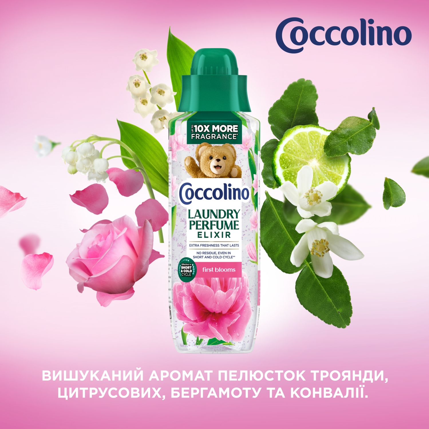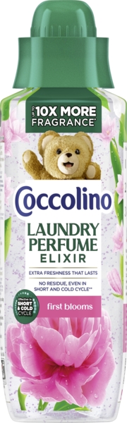 Парфюм для одягу Coccolino Еліксир Весняні квіти — новий рівень догляду за одягом. Його інноваційна прозора гелева формула з мікрогранулами створена, щоб дарувати речам ще більше свіжості — до 10 разів інтенсивніший аромат, який зберігається надовго. Парфум швидко розчиняється у воді, не залишає слідів на тканині і працює ефективно навіть під час коротких програм та прання в холодній воді. Це робить його оптимальним вибором для щоденного догляду та швидких циклів прання, коли хочеться додати одягу надзвичайного аромату.