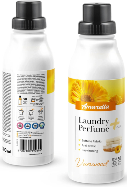Парфум для прання Amarella Vanwood — це концентрований ароматизатор, який додасть вашій білизні насичений, теплий і вишуканий аромат деревини з нотками ванілі. Засіб легко додається під час прання, роблячи тканини м’якими, приємними на дотик і наповненими стійким ароматом. Ідеальний для тих, хто цінує комфорт і хоче, щоб речі довше зберігали свіжість та аромат свіжовипраної білизни. Завдяки концентрованій формулі, парфум економно витрачається та підходить для використання як у машинному, так і в ручному пранні. Він не містить агресивних компонентів, тому дбайливо доглядає за тканинами, не пошкоджуючи їх структуру.
