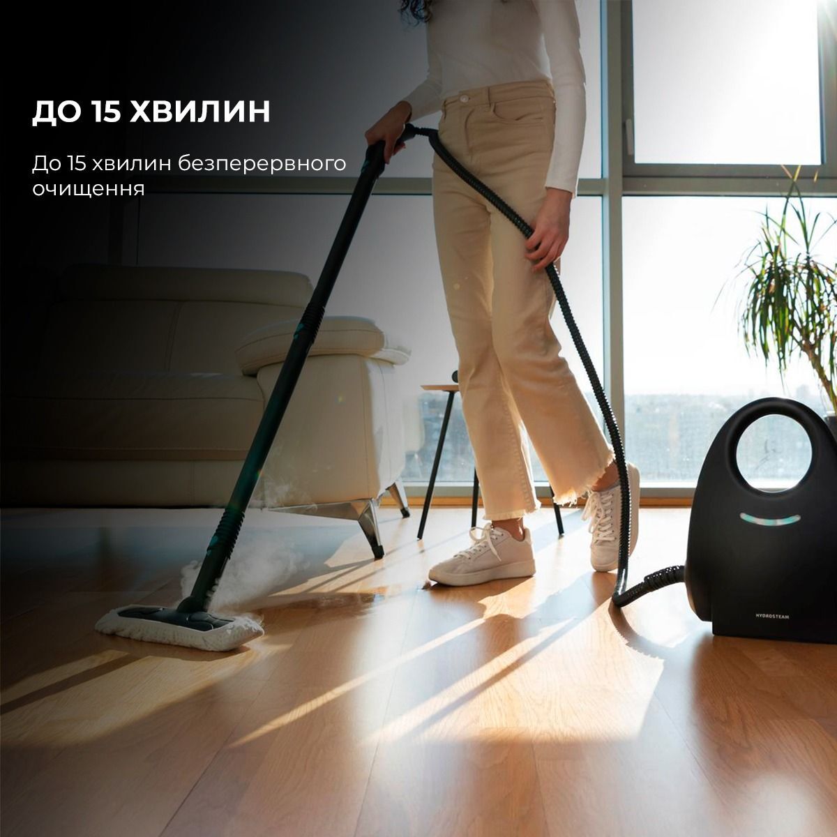 Під час застосування пристрою поверхні піддаються термічній обробці гарячою парою під високим тиском. Це не тільки очищує, а й дезінфікує. Гаряча пара миттєво знищує будь-які бактерії, віруси, грибки та плісняву. Після обробки залишається лише чиста поверхня.