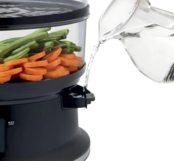 Два харчових лотки забезпечують досить місця для приготування овочів, риби, м'яса, а також зернових та бобових продуктів. Також передбачена додаткова чаша для приготування рису та каш. Пароварка являє собою практичне та вигідне рішення, адже потужності (900 Вт) та об'єму вистачає, щоб за один сеанс приготування побалувати смачними та корисними стравами компанію з 4-5 осіб.