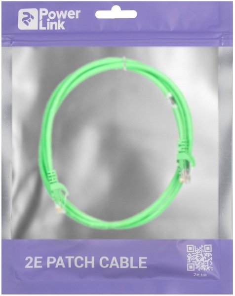 - Патч-корд 2E Cat 5e, UTP, RJ45, 26AWG, 7/0.16 CCA, 1.20 m, PVC, Green (2E-PC5ECA-120GRN)