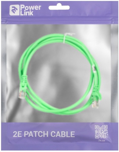- Патч-корд 2E Cat 5e, UTP, RJ45, 26AWG, 7/0.16 CCA, 1.50 m, PVC, Green (2E-PC5ECA-150GRN)