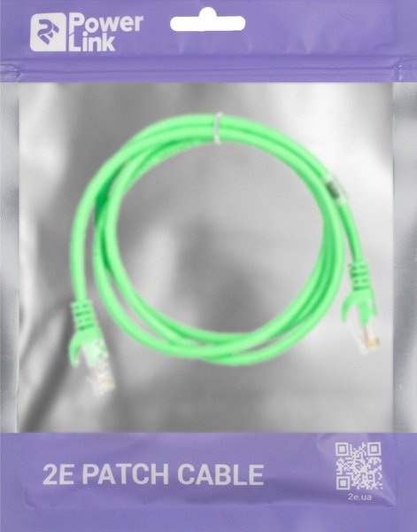 - Патч-корд 2E Cat 5e, UTP, RJ45, 26AWG, 7/0.16 Cu, 1.20 m, PVC, Green (2E-PC5ECOP-120GRN)