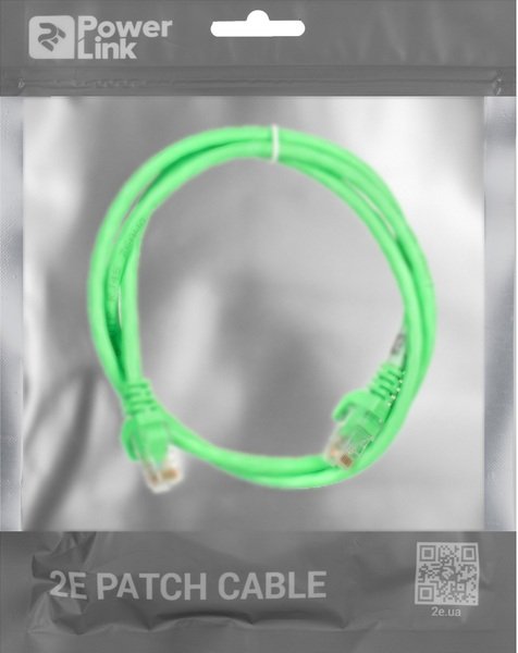 - Патч-корд 2E Cat 6, UTP, RJ45, 26AWG, 7/0.16 Cu, 1.00 m, PVC, Green (2E-PC6COP-100GRN)