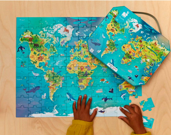 Від Сіднея до Лос-Анджелеса відкрийте для себе міфічні пам’ятники та тварин, які населяють планету, за допомогою цього картонного пазла із 100 елементів! Початківці дослідники та маленькі любителі географії від 6 років будуть у захваті. Ця чудова головоломка, детально проілюстрована, допоможе вашій дитині розвинути пам'ять і спритність. Завдяки великій кількості частин, ця головоломка обіцяє великі випробування та довгі миті веселощів! Він постачається з плакатом, який слугує орієнтиром для дитини, коли вона вперше це робить. Дуже практичний пазл зберігається в гарному футлярі з ручкою для зручного зберігання та транспортування! Ця головоломка виготовлена у Франції з використанням суміші картону FSC і чорнила на рослинній основі.
