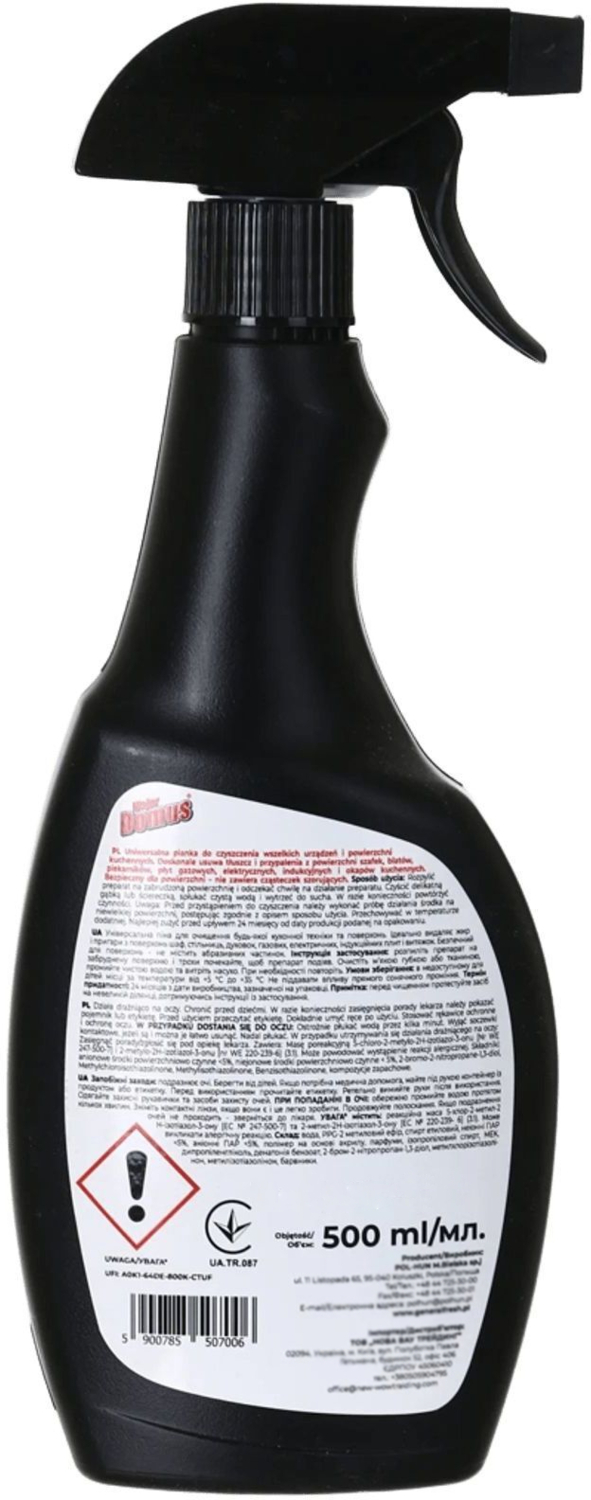 Універсальна піна для чищення кухонної техніки та поверхонь. Видаляє жир і пригари з поверхонь шаф, стільниць, духовок, газових, електричних, індукційних плит і витяжок.